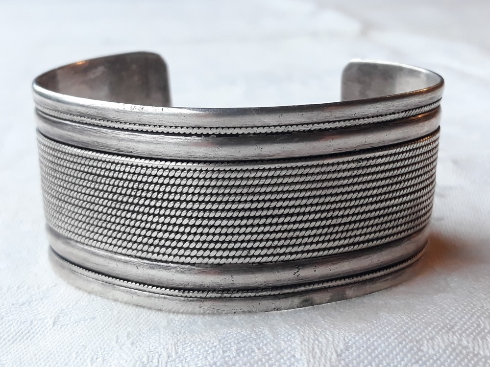 argint BRATARA MASIVA REGLABILA LATA etnic TRIBALA splendida VECHE de efect UNICA