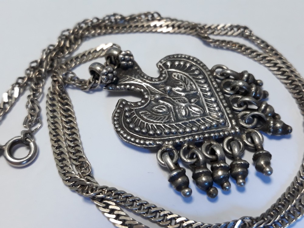 argint MEDALION MASIV etnic TRIBAL RAJASTHAN INDIA vechi UNIC pe Lant argint