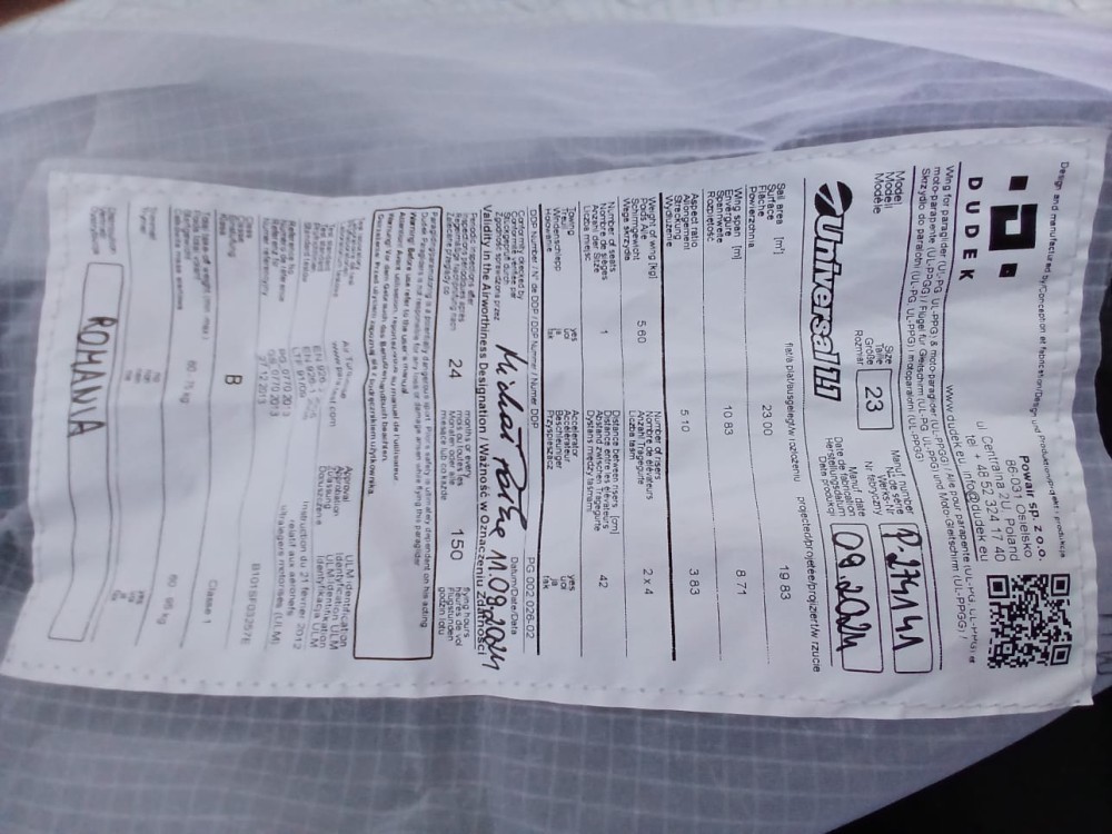 Vand/Schimb Aripă Parapanta nouă Dudek Universal 1.1 Culoare Salsa.