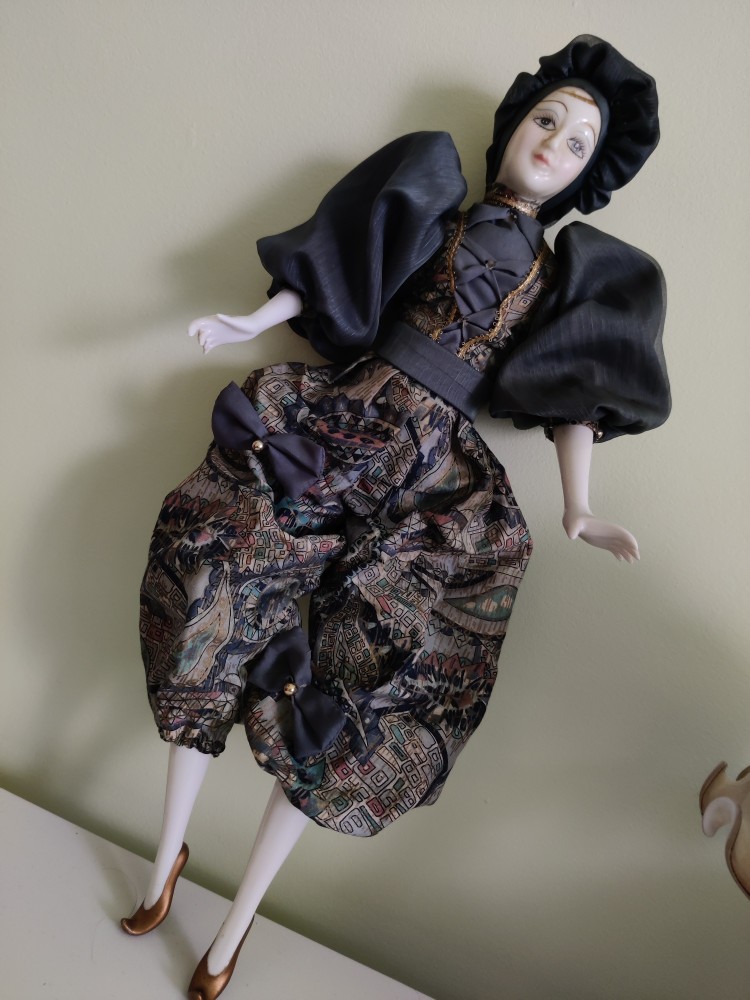 Arlechinul este un splendid obiect de colecție in stare foarte buna, expresiv, ținută deosebită. Capul, picioarele și mâinile sunt din porțelan fin. Aceste părți din porțelan nu prezintă ciobituri.