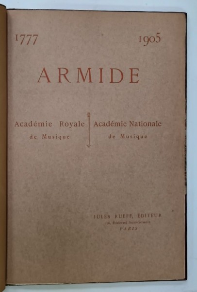 ARMIDE , TRAGEDIE EN 5 ACTES ET 8 TABLEAUX , 1777 , EDITIE ANASTATICA , RETIPARITA 1905
