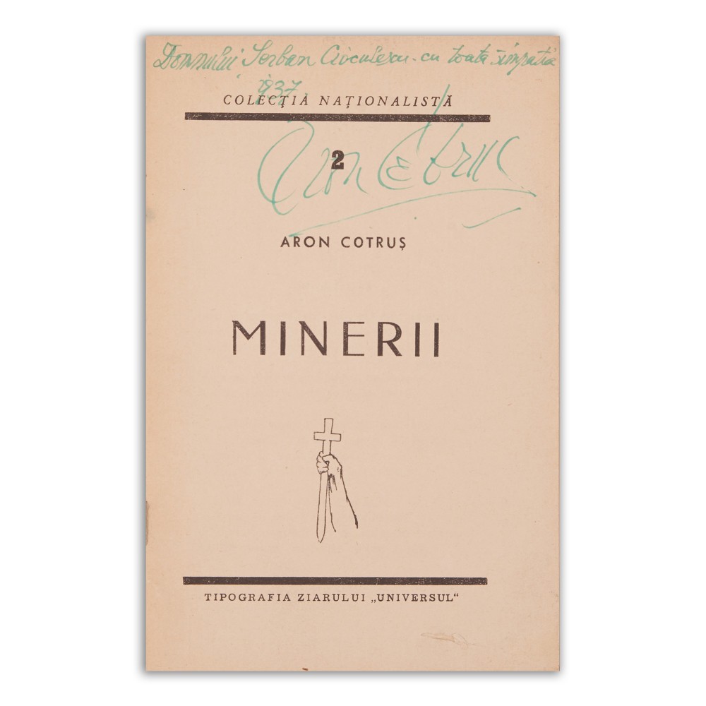 Aron Cotruș, Minerii, București, Tipografia Ziarulului, 32 p. Volumul poartă pe pagina de titlu dedicația olografă a autorului oferită lui Șerban Cioculescu.
