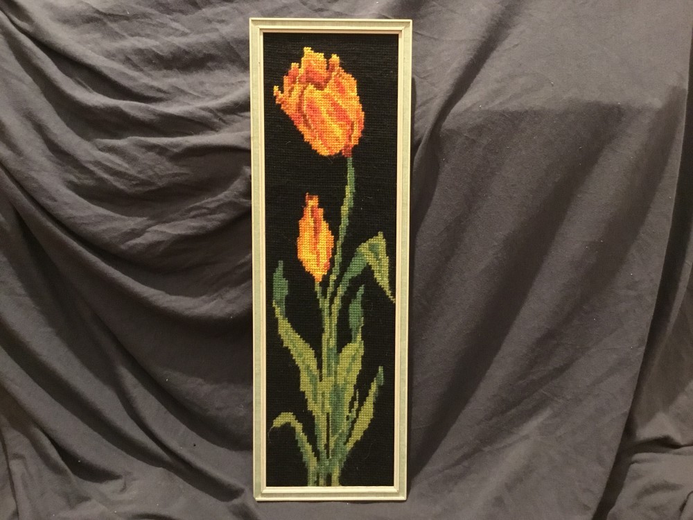 arta / design / vintage - Tablou goblen / cusatura Lalea in rama de lemn !