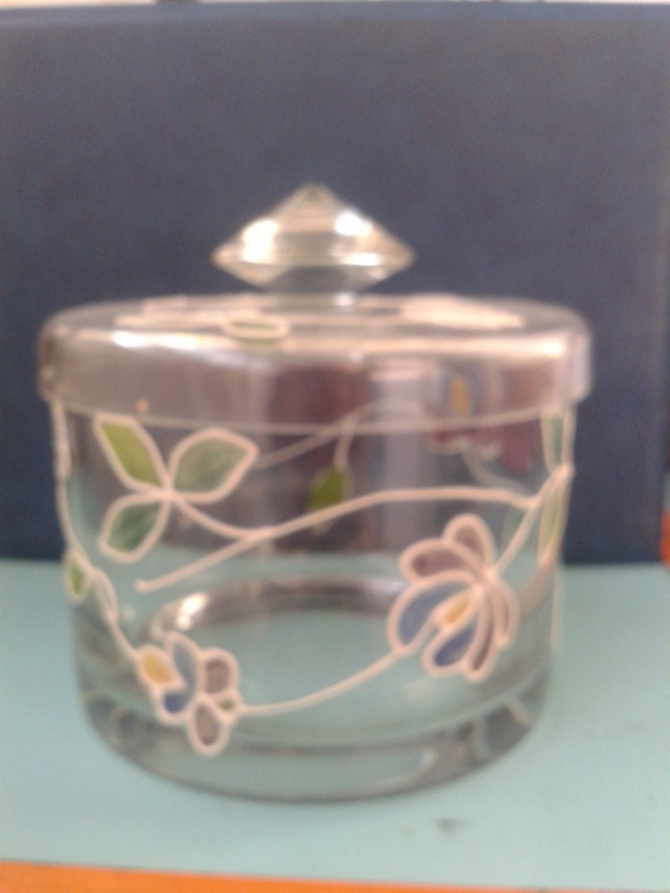 FRUCTIERA VECHE ARTOUVEAU VECHE DIN STICLA PICTATA MANUAL /RARA /DIM.MARI...INALTIMEA=15 CM ...DIAMETRUL =14,5 CM /STARE PERFECTA /
