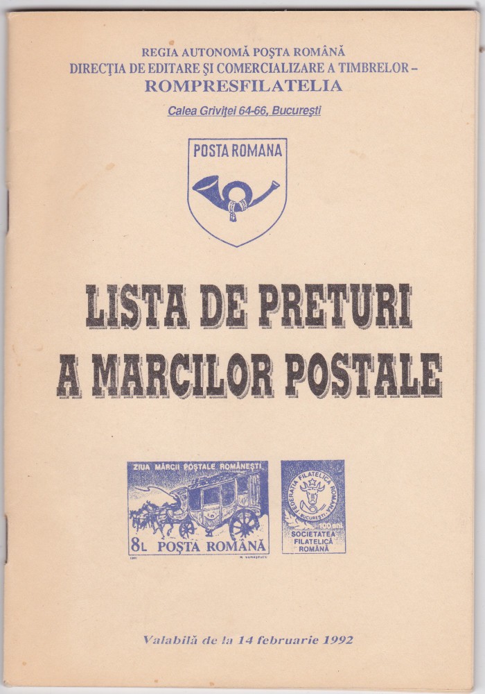 Titlu: LISTA DE PRETURI MARCILOR POSTALE