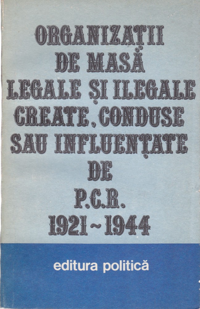 Titlu: ORGANIZAȚII DE MASĂ LEGALE ȘI ILEGALE CREATE, CONDUSE SAU INFLUENȚATE DE P.C.R. 1921-1944, VOL.II