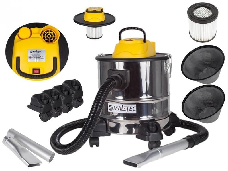 Descriere:. Dispozitivul este folosit pentru aspirarea cenusii din diferite tipuri de cuptoare, cosuri de fum si locuri greu accesibile, unde se acumuleaza praf. Aparatul este echipat cu un tub de aluminiu rezistent la caldura, rezervor rezistent la caldura, un furtun flexibil, realizat dintr-un material foarte rezistent cu spirale metalice rezistente la caldura, aspirator are un maner pentru transport si filtru HEPA, care asigura posibilitatea de aerisire praf sau murdarie aspirate.. Specificații tehnice:. - Tensiune nominala: 220 V.. - Frecventa: 50 Hz.. - Putere: 1800 W.. - Înaltime cu roti: 44 cm.. - Înaltime fara roti: 37 cm.. - Diametru: 29 cm.. - Diametrul furtunului de aspirare: 4 cm.. - Lungime furtun de aspirare: 2 m.. - Lungimea cablului de alimentare: 4 m.. - Capacitate rezervor: 18L.. - Greutate: 4,5 kg.. - Functia de suflare. Setul include:. - Aspirator ML1800-ASH.. - Furtun cu acoperire din aluminiu.. - Capat furtun de aluminiu.. - Filtru HEPA.. - 2 x saci.. - Roti
