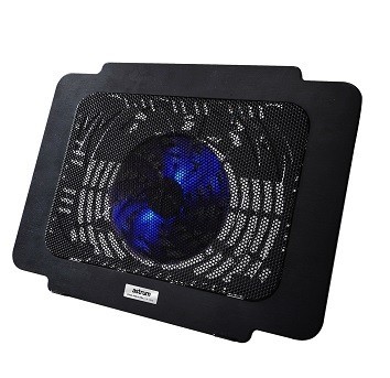 Color Black with mesh top Size up to 15.6” Laptops Material ABS Plastic + Metal Fans 140mm LED Transparent Fans Interface USB attched cable Angle Single Level Fan Size 140x140x15 Air Flow 74.35CFM Light Blue LED Fan Speed 1200?10%RPM |