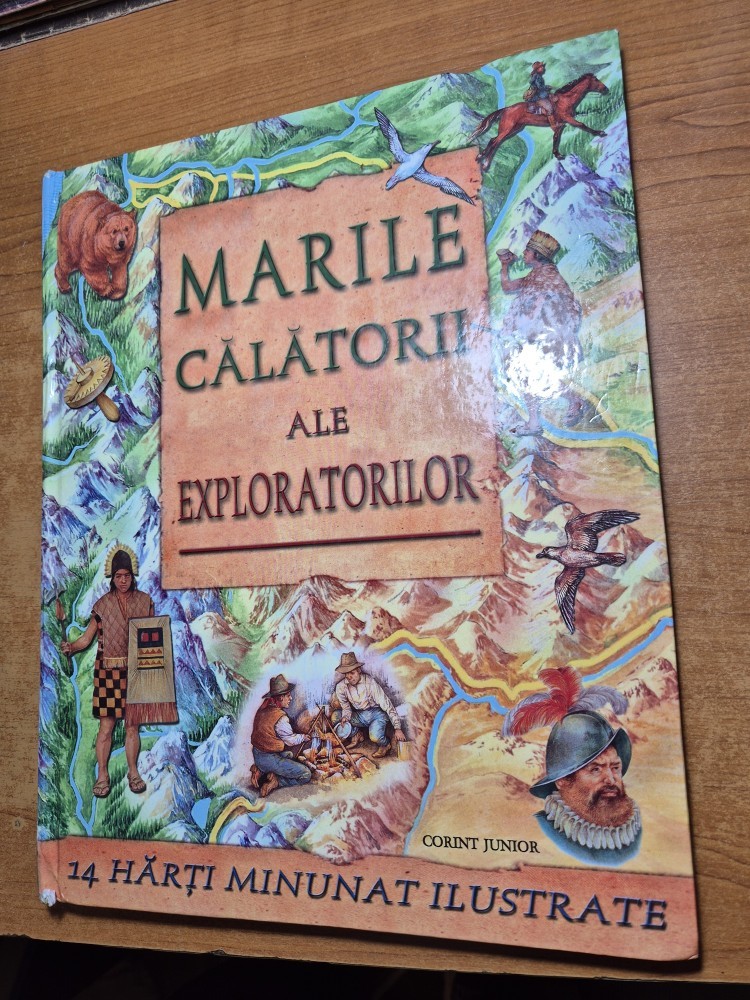 atlas pentru copii - marile calatorii ale exploratorilor - 14 harti ilustrate - din anul 2007 - coperti cartonate, format mare