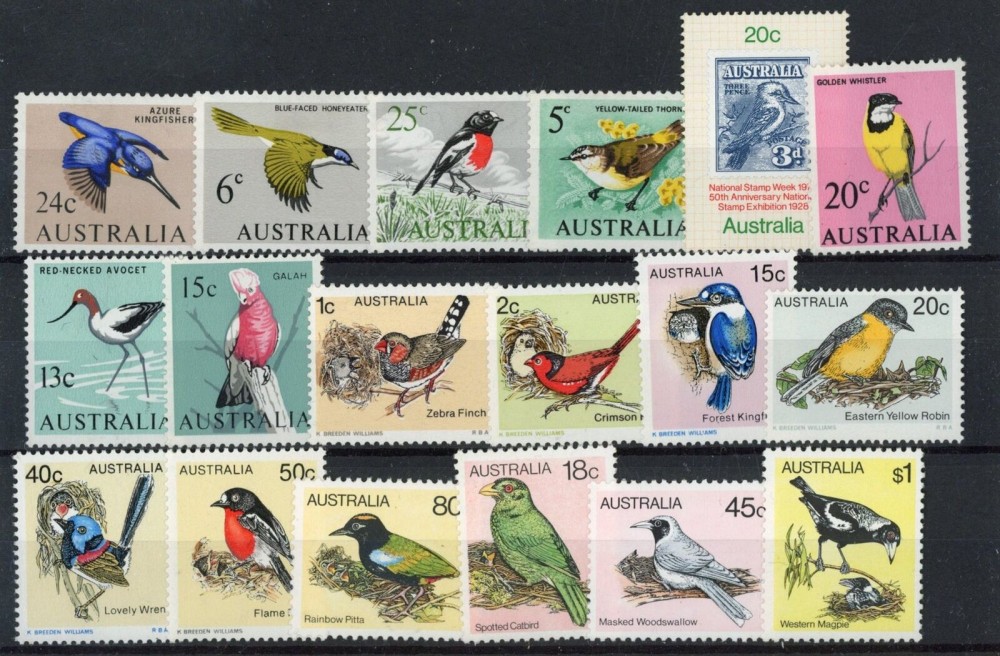 AUSTRALIA-PASARI-Lot de 18 timbre nestampilate