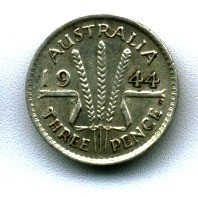 AUSTRALIA THREE 3 PENCE 1944 LITERA S ARGINT STARE AUNC