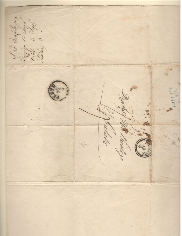 Austria.1852 Scrisoare prefilatelica Trieste-Galati,via Pesta XR.4
