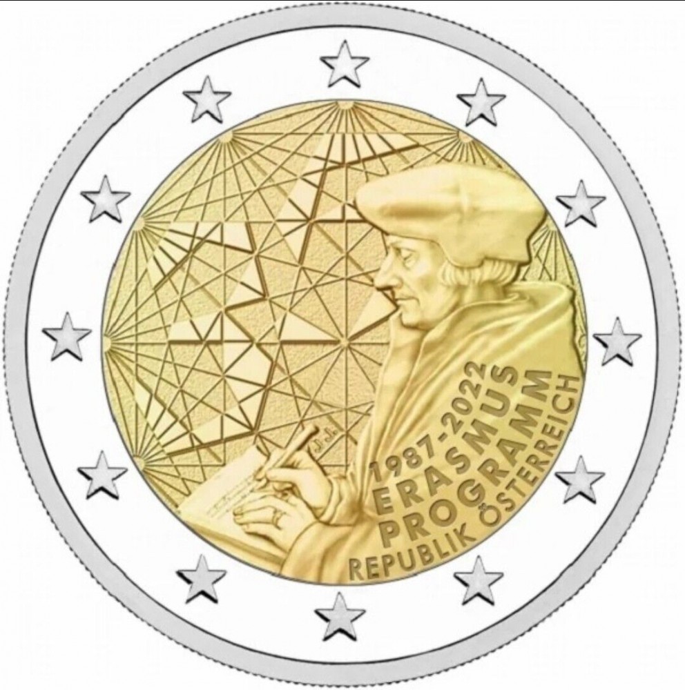 AUSTRIA - 2 EURO 2022 , COMM. ERASMUS - KM NEW - UNC / DIN ROL
