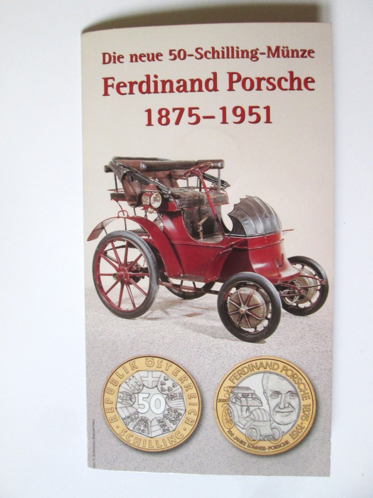 Austria 50 Schilling 2000 UNC,moneda comemorativa Ferdinand Porsche in folderul de prezentare