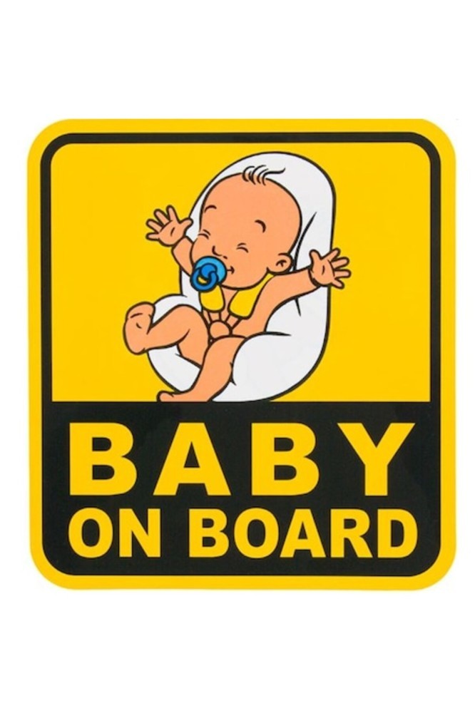 Autocolant auto cu textul „Baby On Board”, dimensiuni 18x20cm.; Vândut și livrat de Variety Market.; Produsul beneficiază de o politică de returnare de 14 zile și de o garanție de conformitate de 24 de luni conform OUG 140/2021.