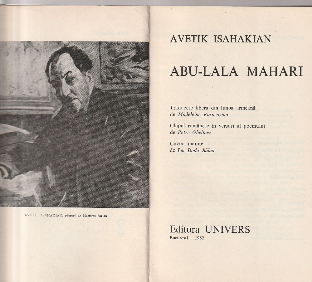 AVETIK ISAHAKIAN - ABU-LALA MAHARI ( EDITIE BILINGVA ARMEANA - ROMANA )