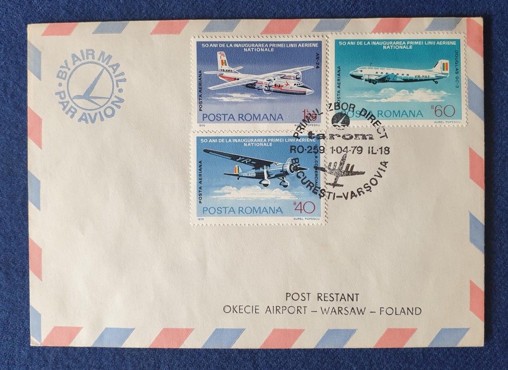 Aviatie - ARIPI ROMANESTI avion - plic Primul zbor direct Bucuresti - Varsovia