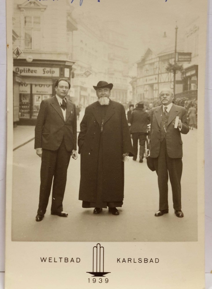 Băile Karlsbad, 1939: Mitropolitul Nicolae Bălan al Ardealului, profesorul Gheorghe Cuza (fiul lui A.C. Cuza) și istoricul Ioan Lupaș.