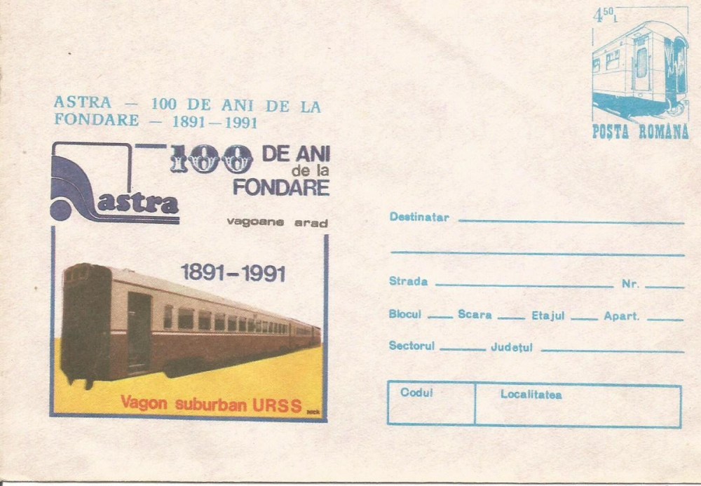 (B) plic -(cod 052/91)-ASTRA 100 de ani de la fondare