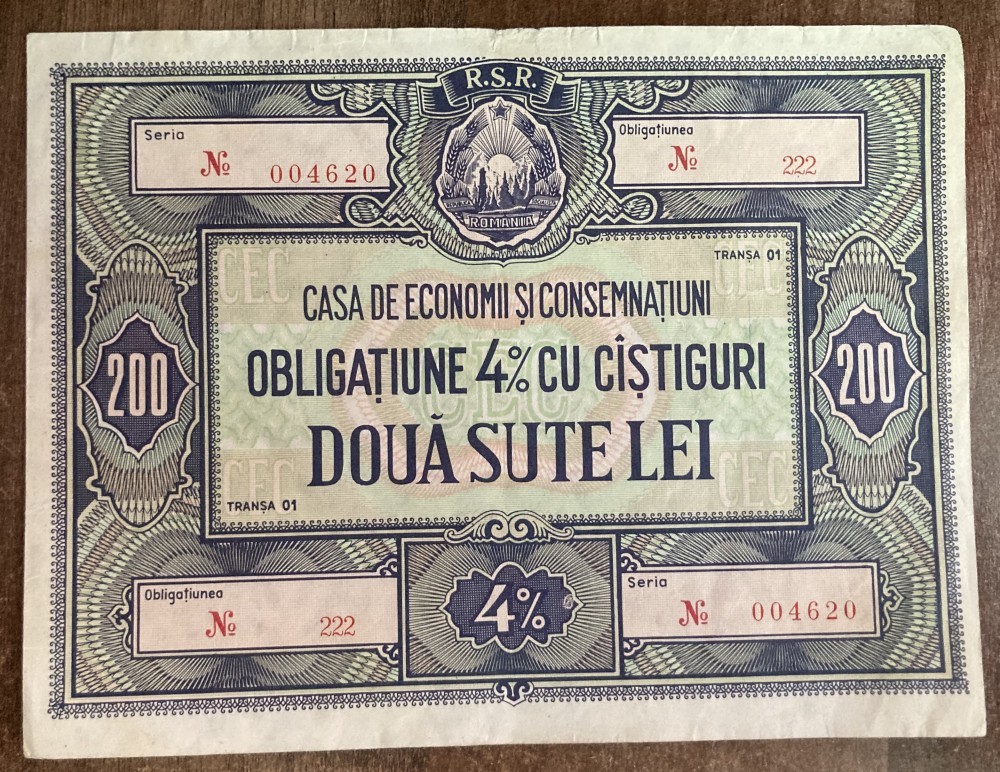 B11 121 - Bancnota foarte veche - Romania - Obligatiune CEC - 200 lei - Emisiune RSR