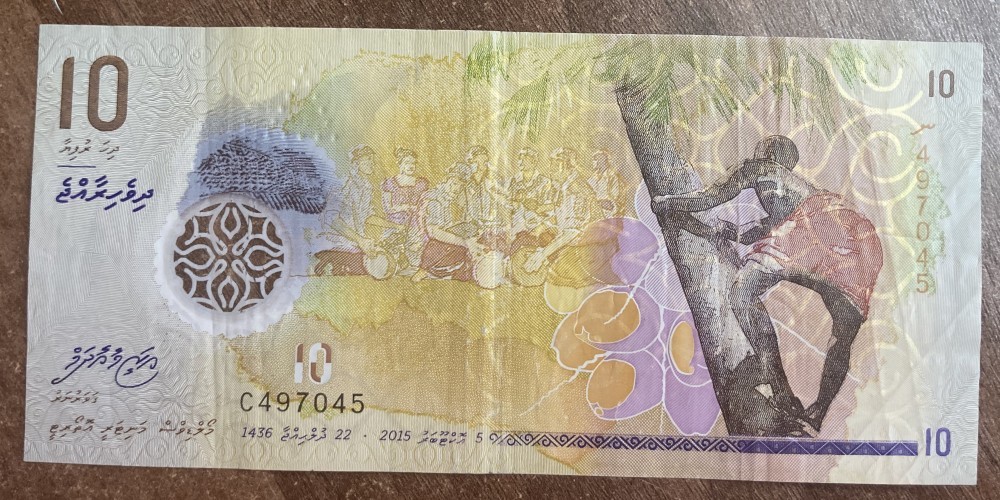 B11 2 - Bancnota foarte veche - Maldive - 10 rufiyaa - 2015