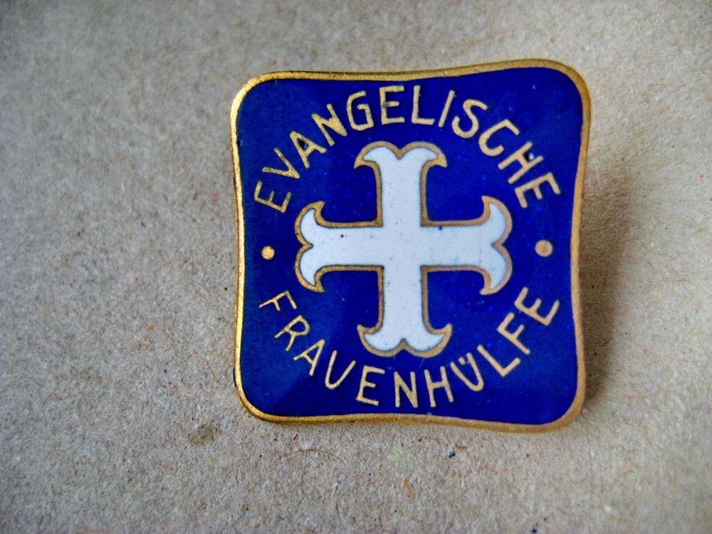 B114-Insigna Ajutorul Femeilor evanghelice alama emailata.