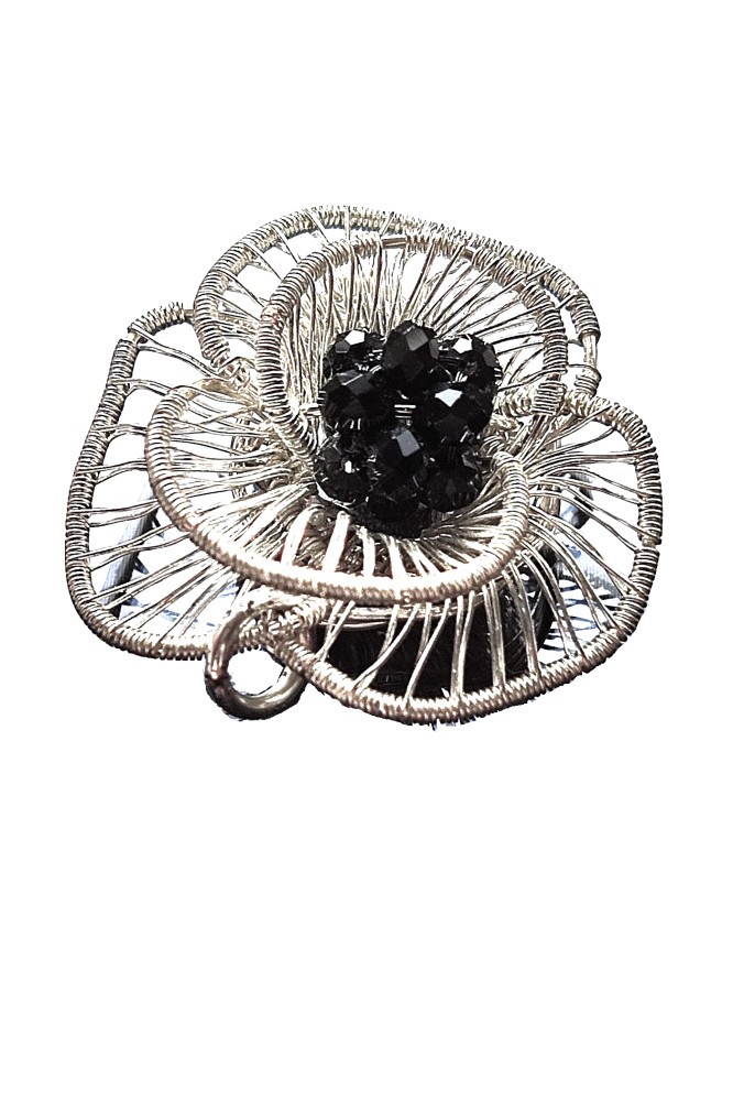 Pandant floare argintie mura din cristale negre de sticla. Cupru acoperit cu argintiu tratat (SiCu) crocheted. Stones - Mura din cristale negre de sticla.