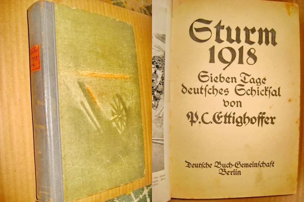 B646-I-WW1-Furtuna-Sturm 1918-Editie 1938- Editie veche germane-Operatiunile militare din 1 razboi mondial, gros copertata in stare foarte buna. Marimi: 19/ 12 cm, 308 pagini.