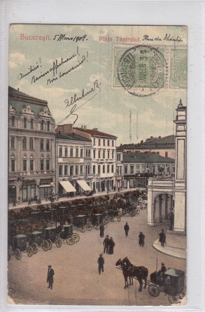 B76707 Romania Bucuresti Piata teatrului 1908 Animatie mare