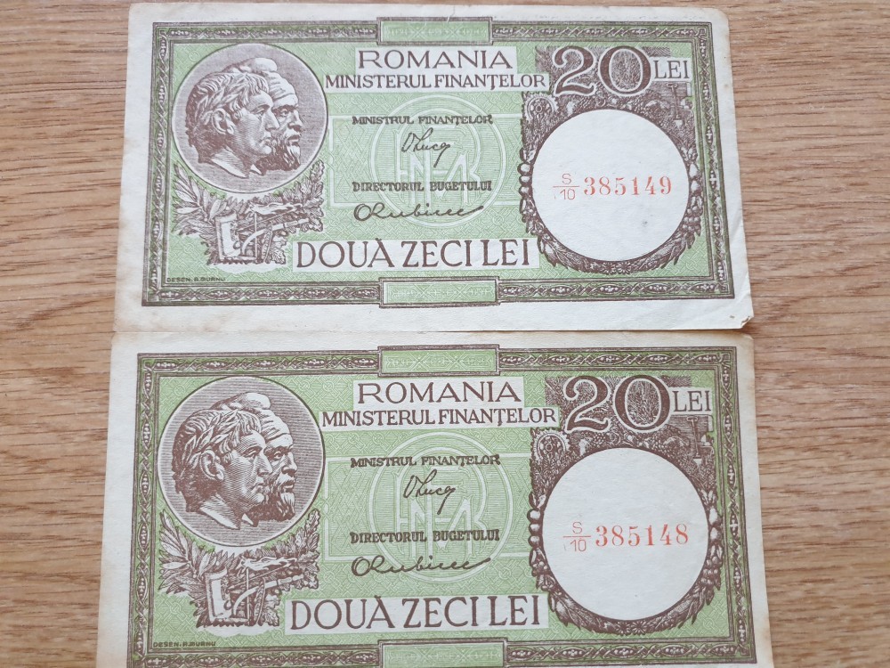 Bacnote 20 lei , serii consecutive , stare buna