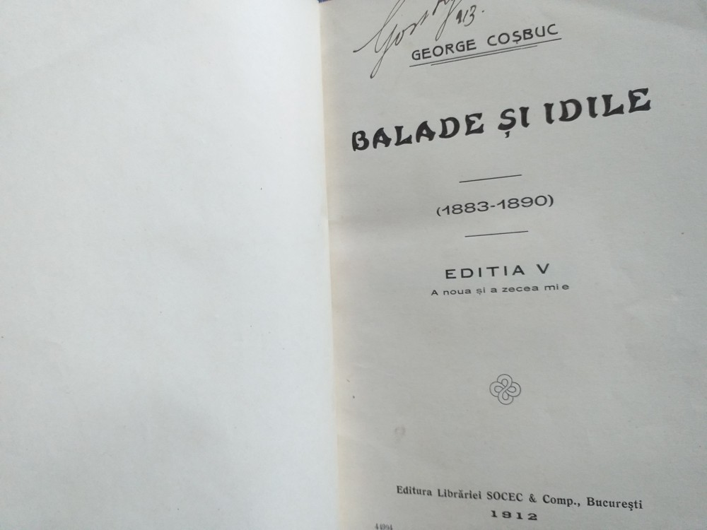Balade si idile- George Coșbuc, ediția Socec 1912, 224 de pagini. Stare foarte buna. Legatura integral piele.