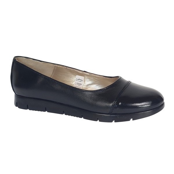 Balerini dama din piele naturala - Model Raisa Negru cu varf Lac
