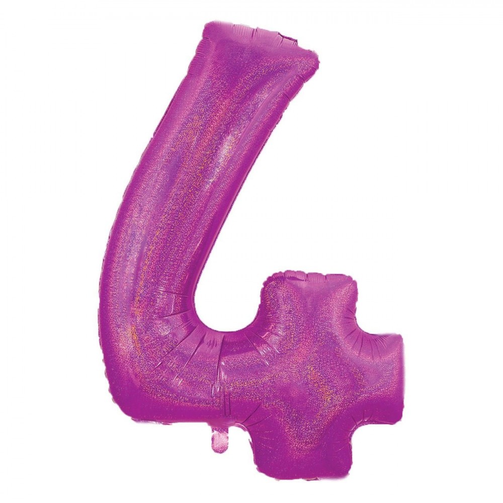 Balon Petrecere Holografic, Nr. 4, Fucsia, 70x40cm