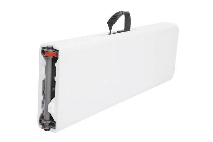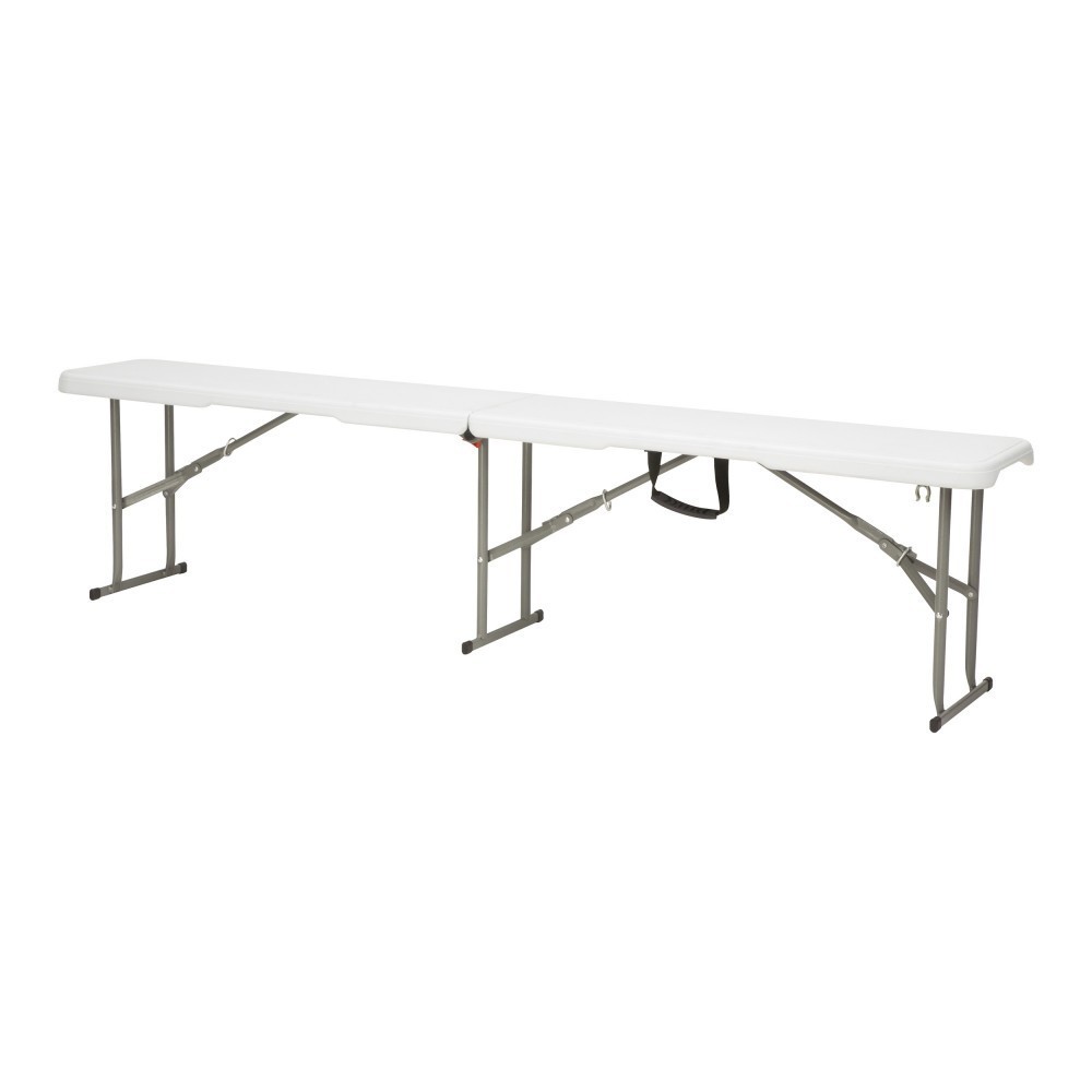 Suprafața de ședere a băncii ușoare pentru catering este fabricată din HDPE, în timp ce banca de grădină este fabricată din oțel. Datorită materialelor folosite, banca pliabilă poate fi mutată cu ușurință oriunde.