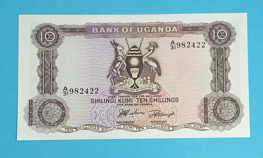 Bancnotă Uganda (pick 2) 10 Shillings 1966 UNC serie: A/31 982422