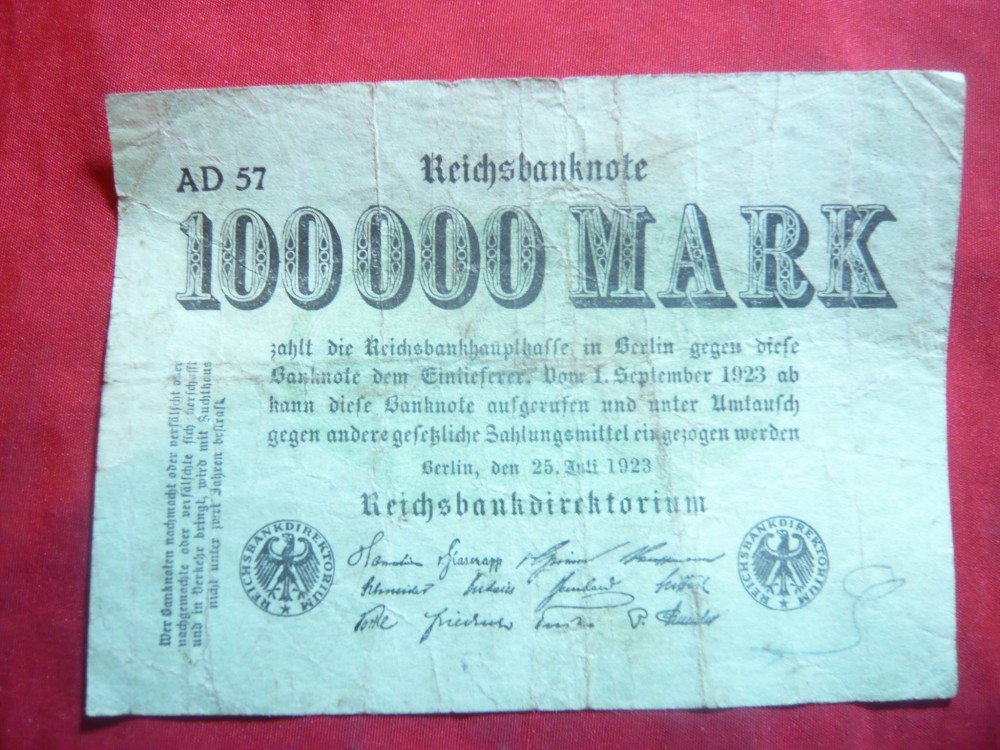 Bancnota 100 000 Marci 1923 Germania , cal.medie