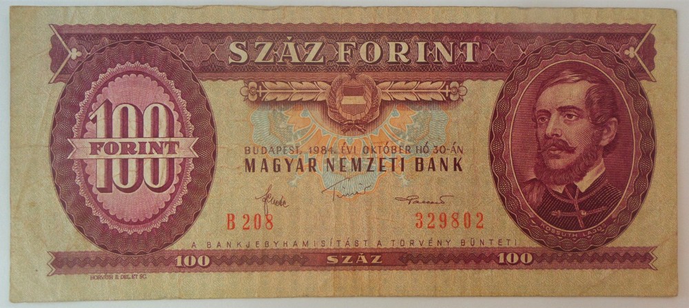 Bancnota 100 FORINTI - UNGARIA, anul 1984 *cod 217