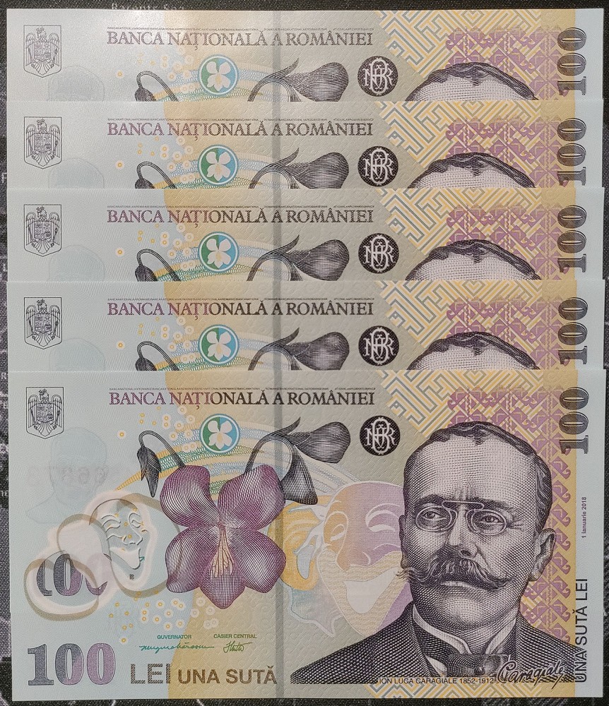 Bancnota 100 lei Romania - 2018 (2022) - 5 buc consecutive.