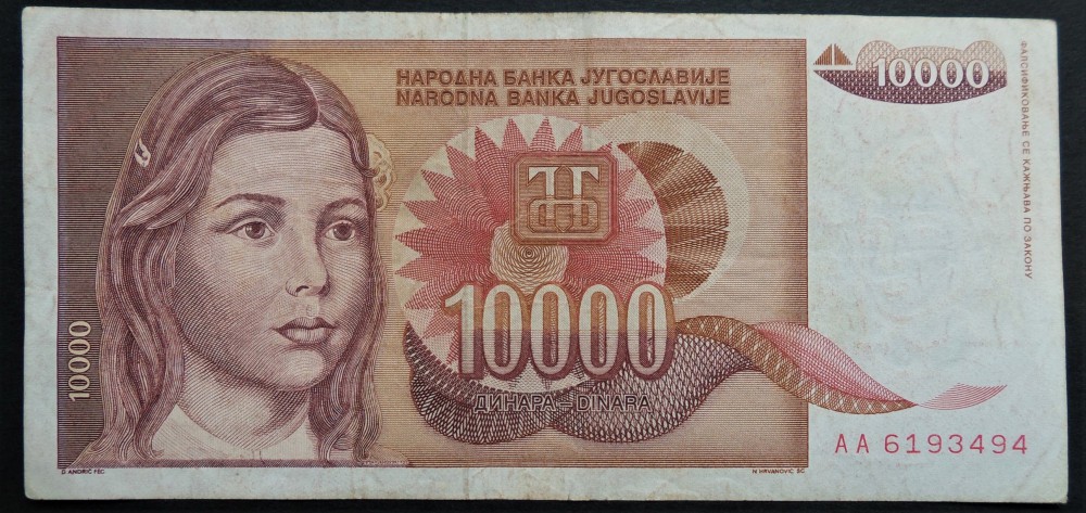 Bancnota 10000 DINARI / DINARA - YUGOSLAVIA, anul 1992 * cod 483