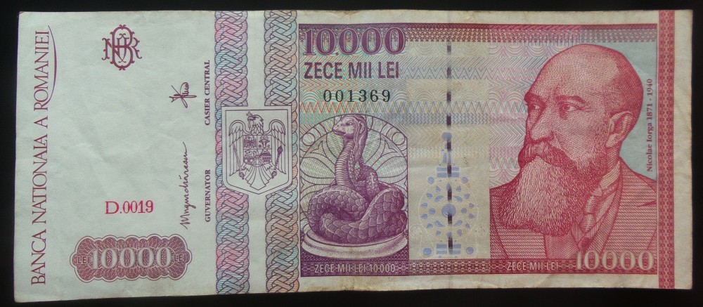 Bancnota 10000 LEI - ROMANIA, anul 1994 * cod 163 = Seria D 0019 - 001369