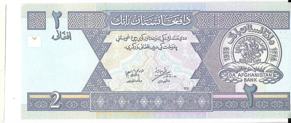 Bancnota 2 afghanis 2002, UNC - Afganistan
