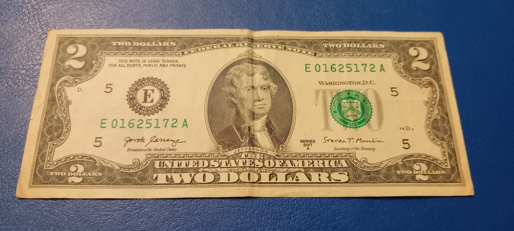 Bancnota 2 Dollar 2017 Seria E01625172A Jefferson