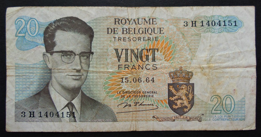 Bancnota 20 FRANCI - BELGIA, anul 1964 * cod 776 A