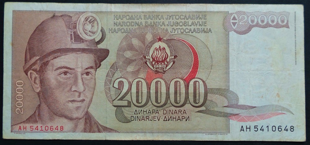 Bancnota 20000 DINARI / DINARA - RSF YUGOSLAVIA, anul 1987 *cod 262