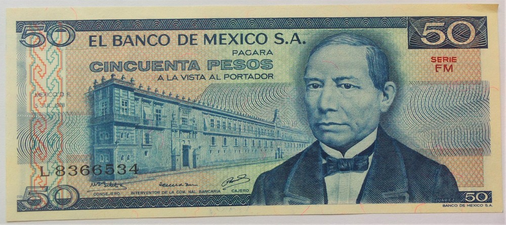 BANCNOTA 50 PESOS - MEXIC, anul 1978 *cod 884 = UNC