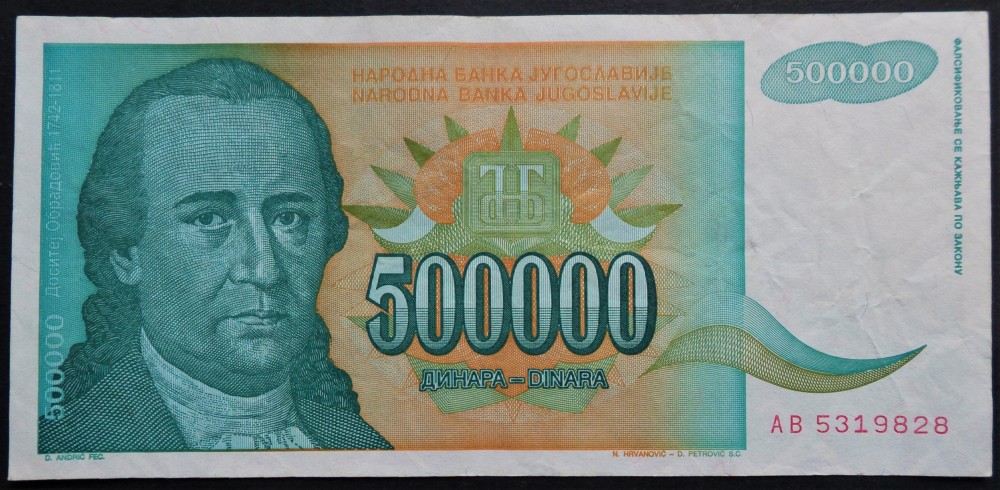 Bancnota 500000 DINARI / DINARA - YUGOSLAVIA, anul 1993 *cod 283
