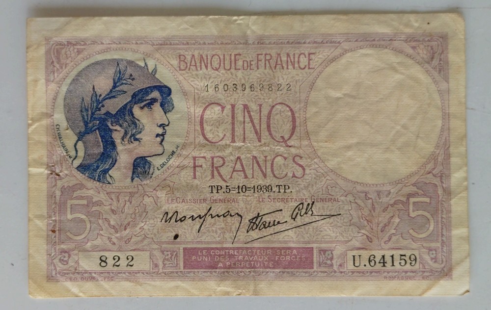 Bancnota Franta - 5 Francs 05-10-1939.