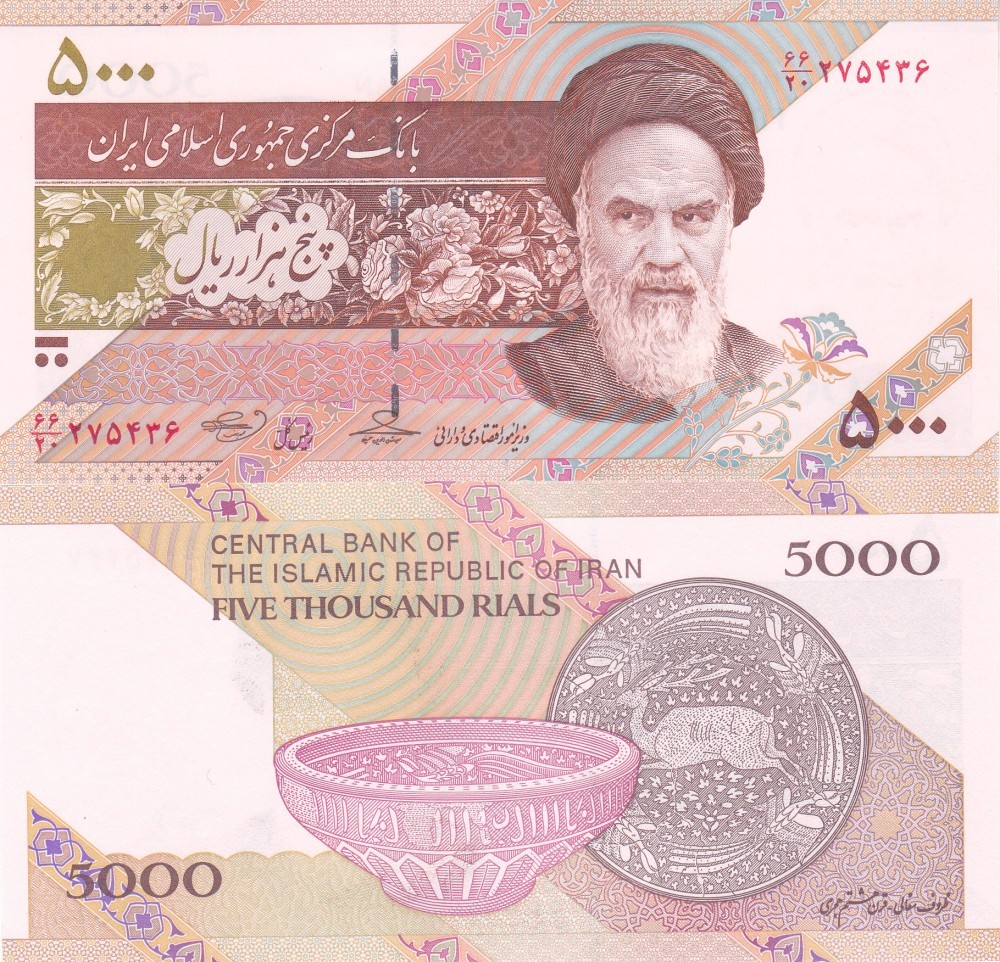 Bancnota Iran 5.000 Riali (2013) - P152a UNC ( desen nou pe spate )