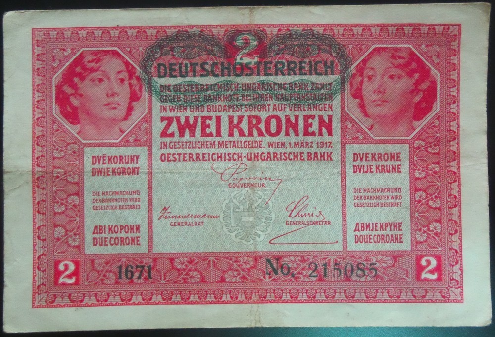 Bancnota istorica 2 COROANE - AUSTRO-UNGARIA (AUSTRIA), anul 1917 *cod 187