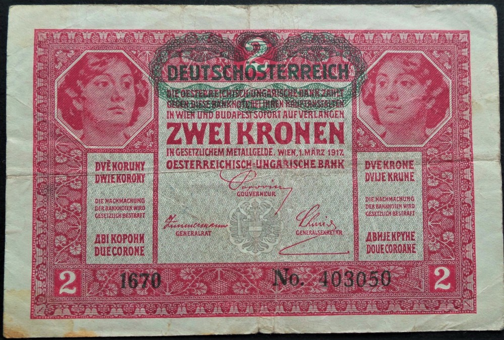 Bancnota istorica 2 COROANE - AUSTRO-UNGARIA (AUSTRIA), anul 1917 * cod 401